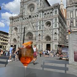 Und finden uns dann schon im Altstadtkern wieder. Wir kommen aus dem Staunen garnicht mehr heraus. Alles ist so überdimensioniert, die Gebäude, die Paläste, Säulen und Plätze. Man fühlt sich so winzig… wir sind allerdings von der vielen Lauferei und Eindrücken so platt, dass wir den Museumsbesuch von der Todo Liste streichen müssen und stattdessen etwas trinken gehen. Dafür aber mit Ausblick auf die Kathedrale von Florenz mit ihrer wunderschönen Kuppel, die wir uns natürlich auch noch anschauen wollen.