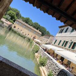 Heute wollen wir ein bisschen die Umgebung erkunden und fahren deshalb 2 von unserem Host empfohlene Städtchen an. Pienza und Bagno Vignoni. Beides wieder wunderschöne Altstädtchen. Pienza ist voll mit Läden die einheimische Produkte und Kleidung verkaufen, Bagno Vignoni besteht aus einem Restaurant neben dem Anderen und der Besonderheit: ihrer Thermen… bereits die Römer haben hier schon gebadet 🤗. Klar, dass ich da auch mal kurz in den Naturpool eintauchen muss. Weil ich keinen Bikini dabei hab halt in Unterwäsche 🤭.