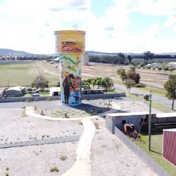 Yerong Creek has a beautiful memorial park where we stopped for lunch. Nearby is their water tower crammed wirh superb artwork.