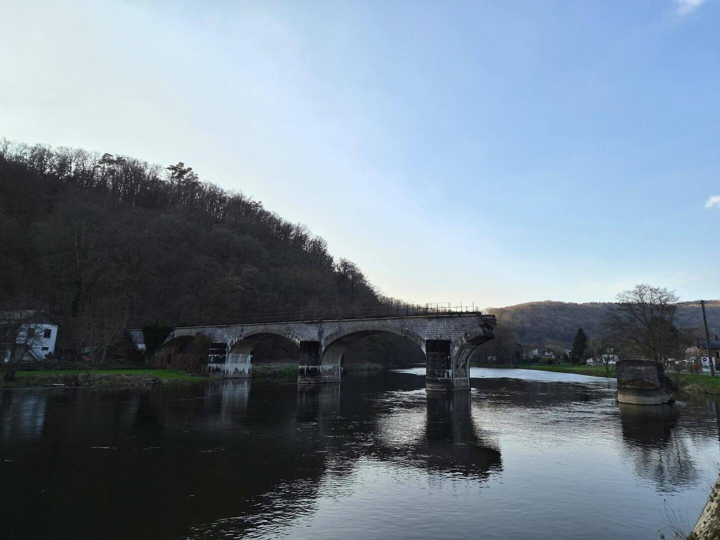 Tunnel which was rebuild,and behind a new bridge over the original bridge piers