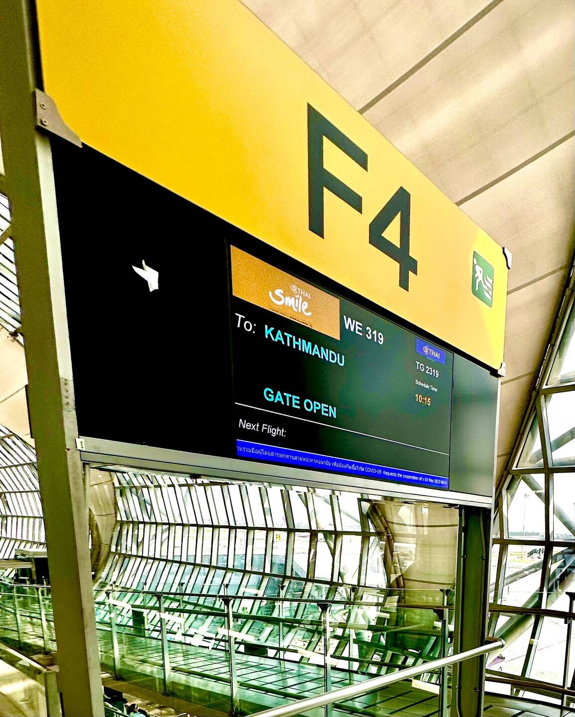 Waiting for the plane for the last leg of our trip to Nepal, at Suvarnabhumi Airport
