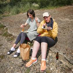 Malgré la météo capricieuse, c'est le début de la fête des fleurs à Plomeur. On y va avec le repas de midi pour manger dans le van.