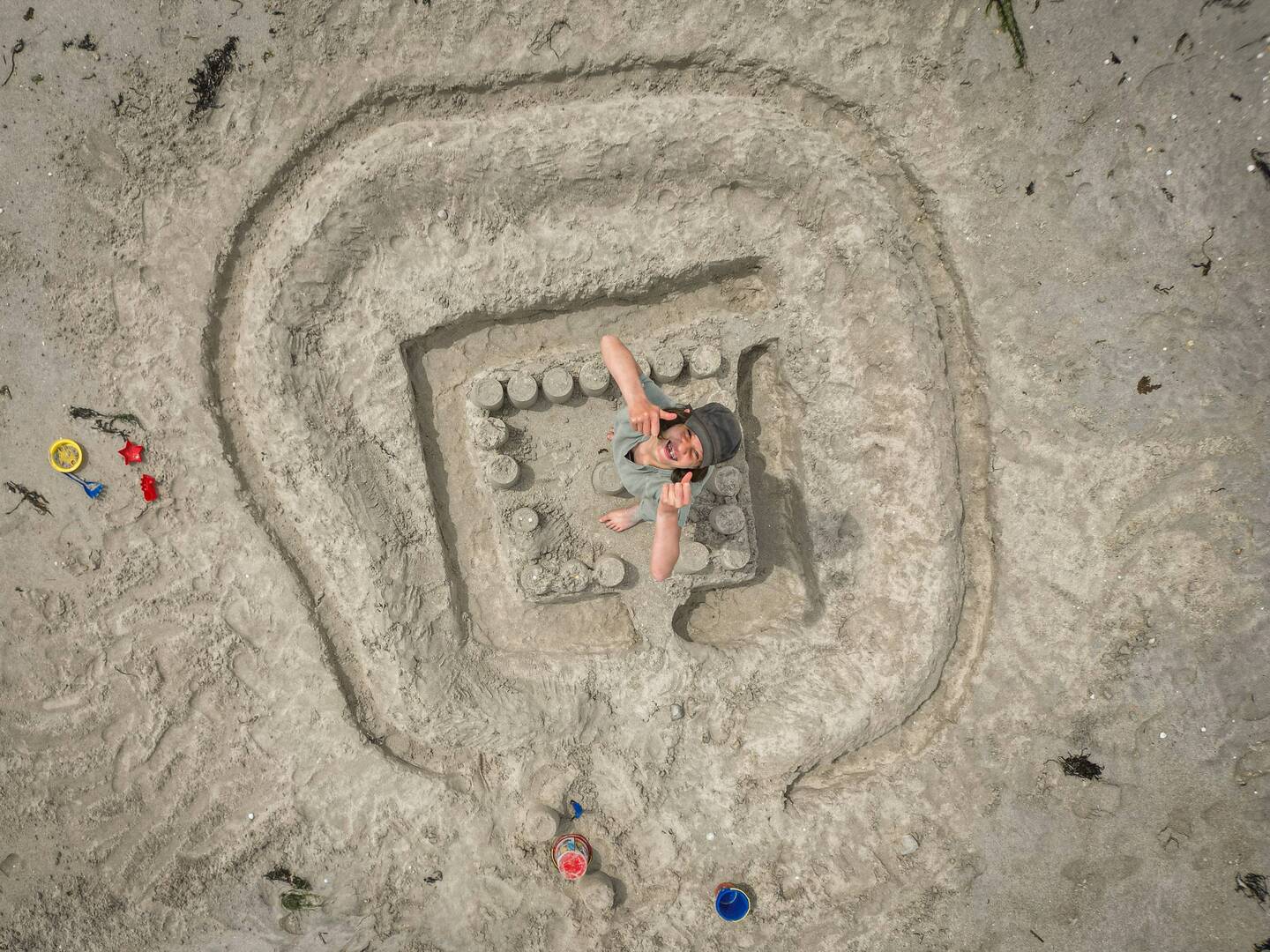 Pendant que maman fait la sieste sur la plage, nous on ce lance dans la construction d'un moyen château.