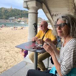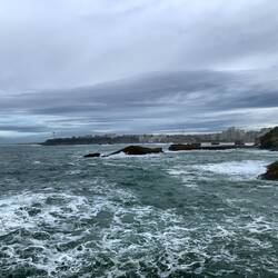 Aujourd’hui, le matin plage à Hendaye puis petit marché. Après micro balade à côté du phare ( nous sommes en Espagne).