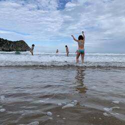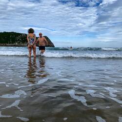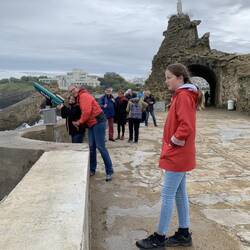 Aujourd’hui, réveil au bord de la rivière puis douche. Après balade en haut de la montagne où des chasseurs "très gentils" nous on dit de partir. Donc let’s go à saint jean de luz.