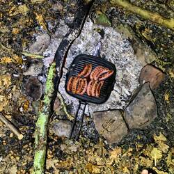 Avant d’arriver là bas, nous nous arrêtons à la grotte du Sare. Enfin nous arrivons au lieu du dodo. Comme la dernière fois, nous faisons un feu 🔥. Cette fois nous grillons des saucisses etLeggi altro