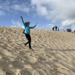 Aujourd’hui, réveil au bord du ruisseau. Puis nous partons pour la dune du pilat. Nous nous arrêtons laver le linge et en profitons pour manger pendant que la machine tourne. Ensuite sur la routeLeggi altro
