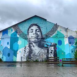 Ensuite, toujours humide pour faire un tour en ville. Maman nous trouve l’espace Darwin : Epicerie, skate Park, Graf,... très sympa.