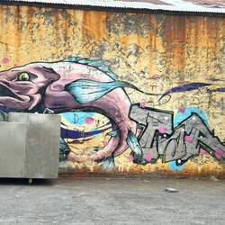 Bei uns wäre Hellisgerdi ein Kaff ...hier ist es schon eine Kleinstadt..... mit verrückten Graffiti Kunstwerken an den Häusern....