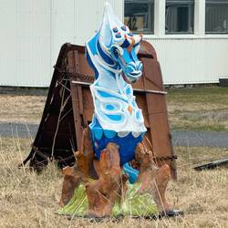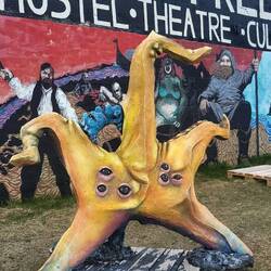 ...das gar keins war...sah nur von der Ferne so aus...eigentlich war es ein Seepferdchen... das zu einem wohl etwas anderen Gästehaus gehört... war eher so wie in einer Geisterstadt dort..