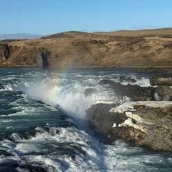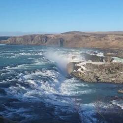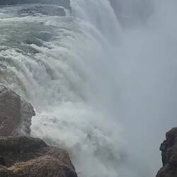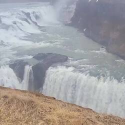 Der Gullfoss ist 229 m breit und bedeutet im Isländischen Gold.... er ist bekannt dafür das ganz oft über ihm ein Regenbogen 🌈 zu sehen ist. Leider bei uns nicht...