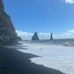 In Dyrholaey nochmal ein gigantischer Blick (bei Sonnenschein 🌞) über den Black Sand Beach.