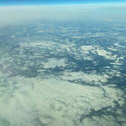 Flying over the ocean towards Newfoundland and flying over the most amazing ice flows! Had to ask a member of crew if it definitely was ice!