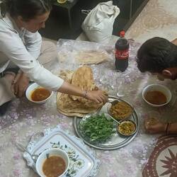 La tante de Hossein nous apporte à manger...