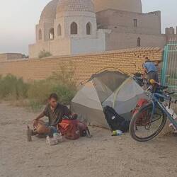 Vélo depuis frontière la de l'Ouzbékistan. Jusqu'à Bandboshi. Mosquée, cimetière.