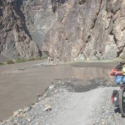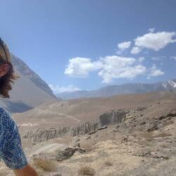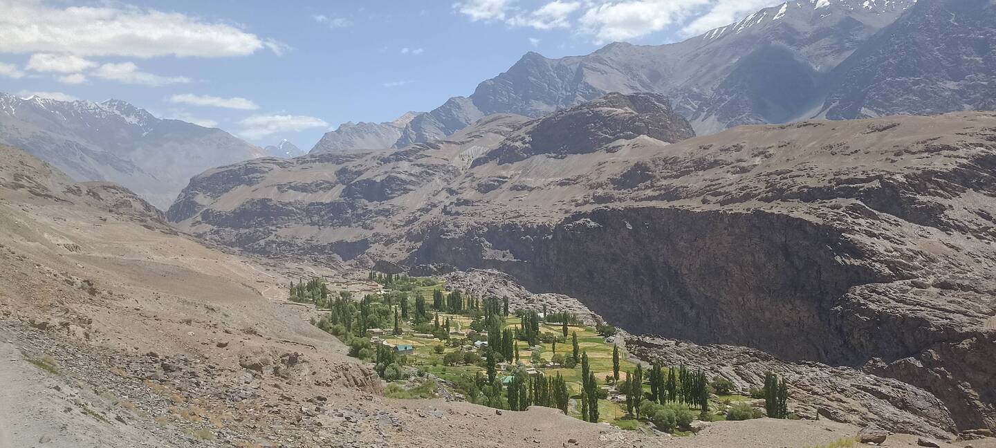 La descente jusqu'à savnob (oasis perdu dans les montagnes) est fantastique. On longue la montagne. Avec la falaise à nos côtés !