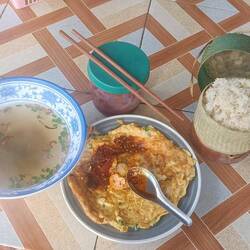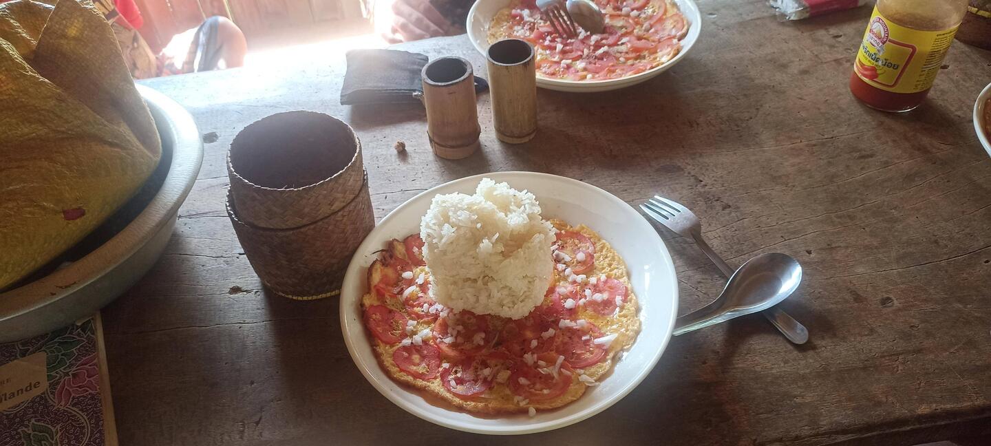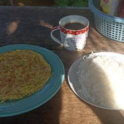 Omelette riz au petit déjeuner.