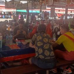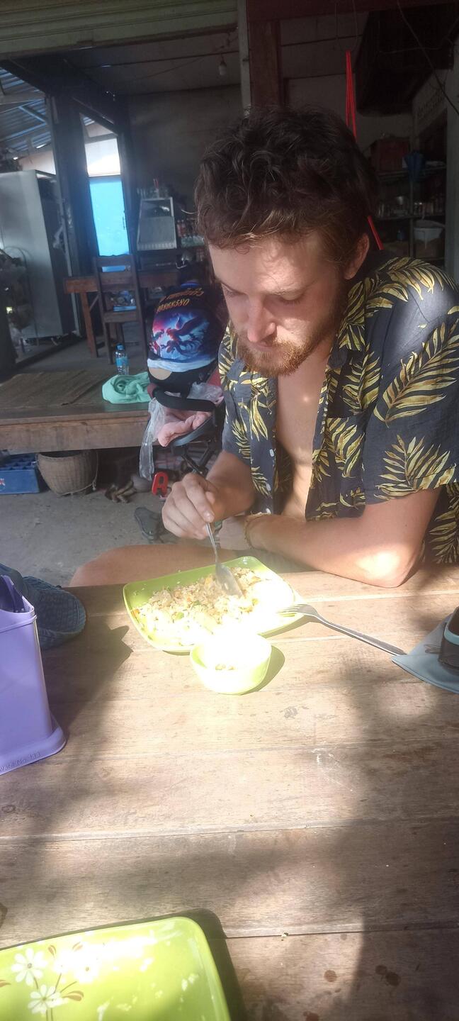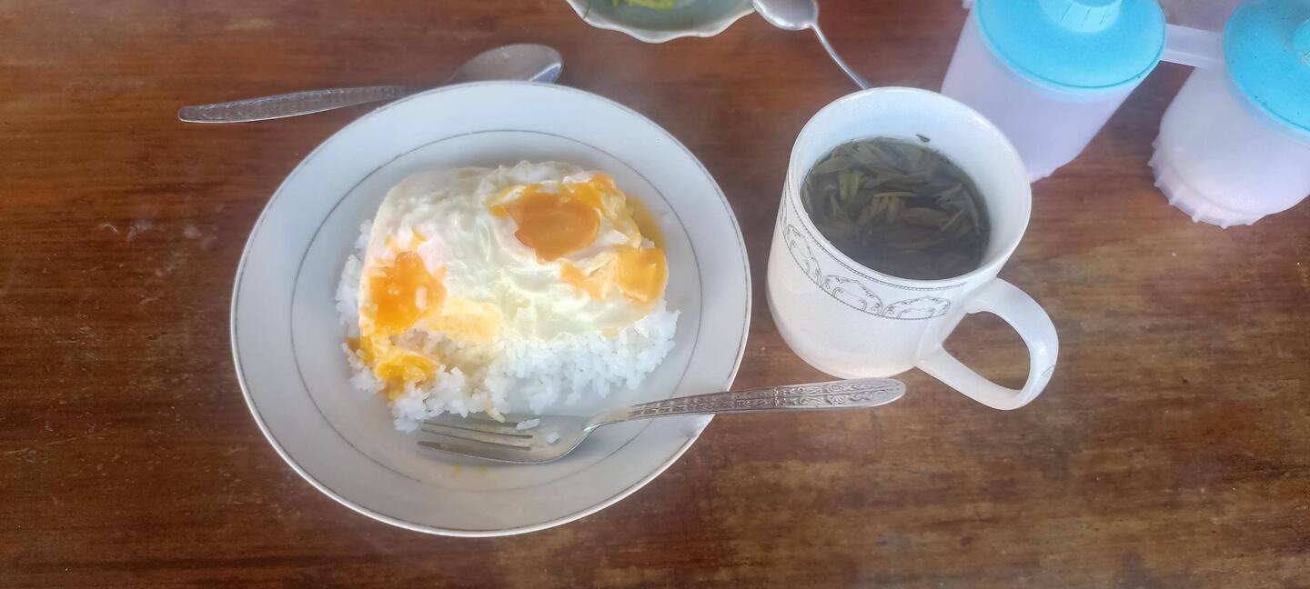 Je vais manger au restaurant juste à côté de l' hôtel. C'est bondé de locaux qui prennent leur petit déjeuner ( très familial).