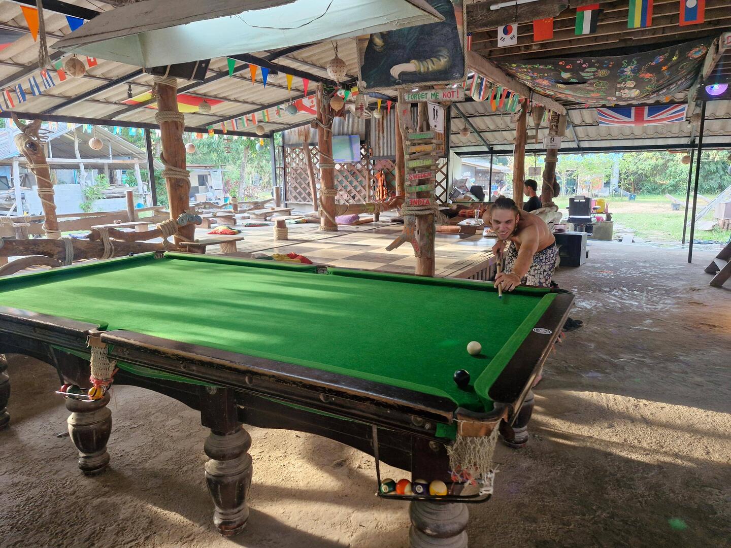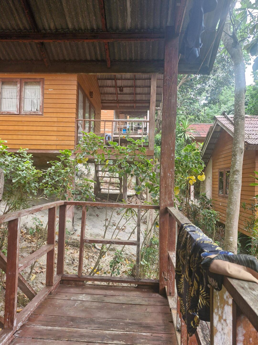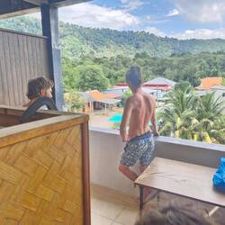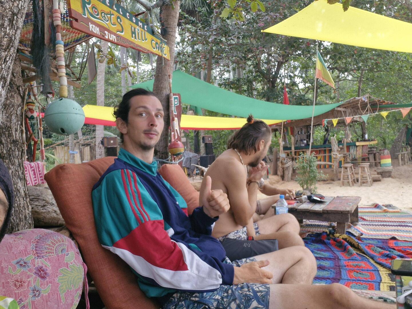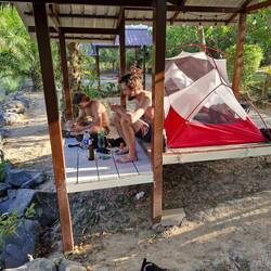 Je rejoins Noé à la terrasse du bungalow!