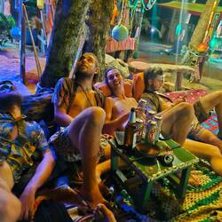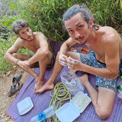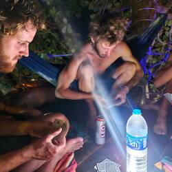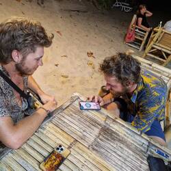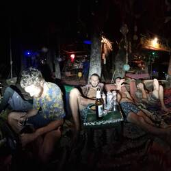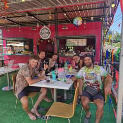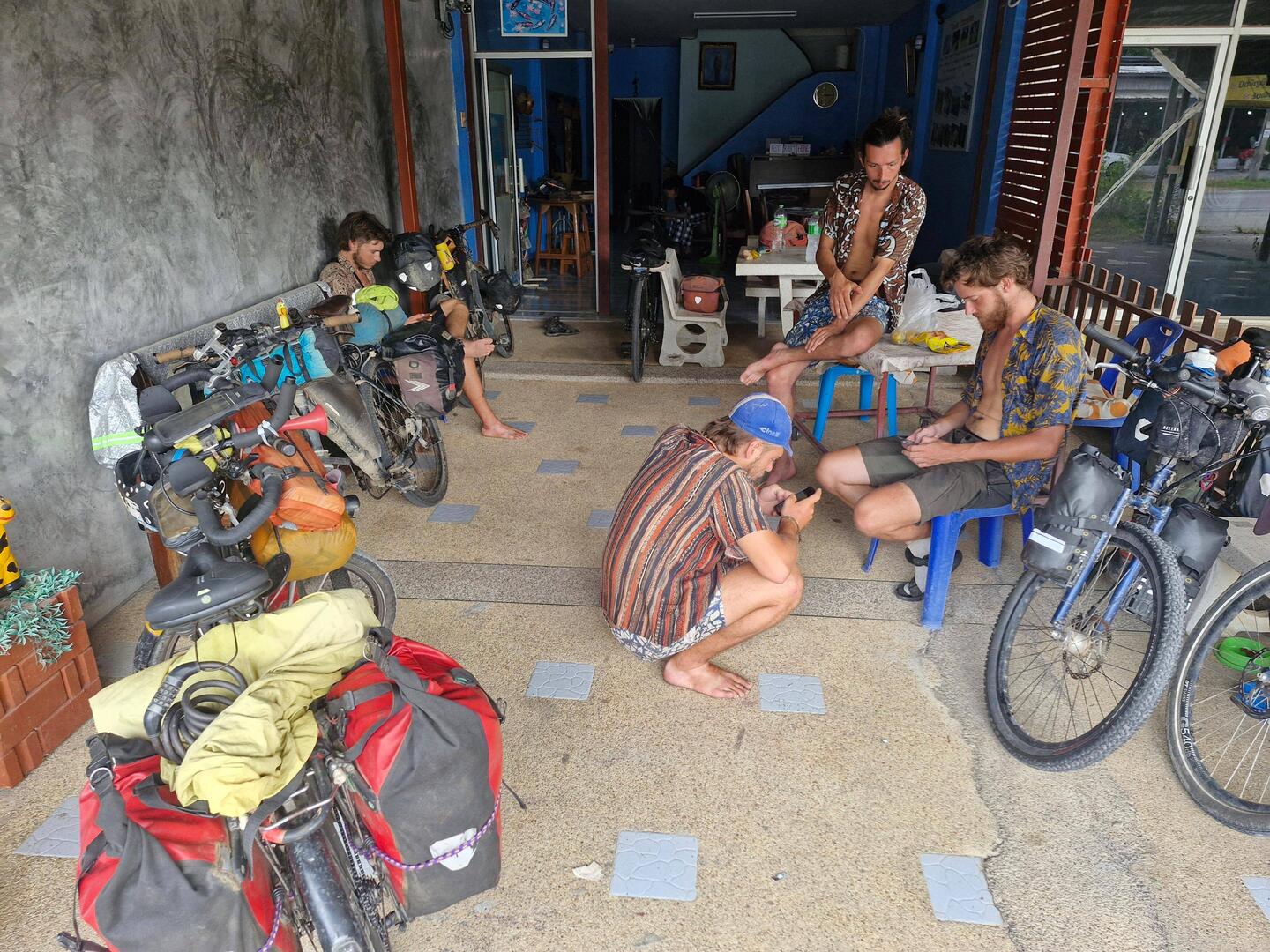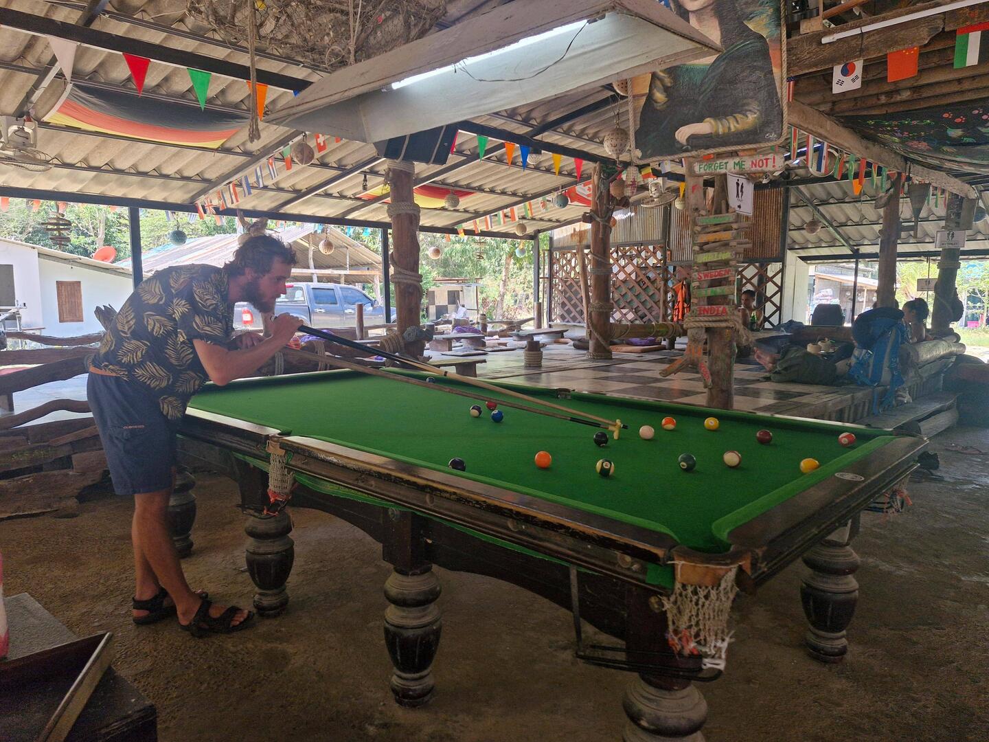 Je rejoins Noé à la terrasse du bungalow!