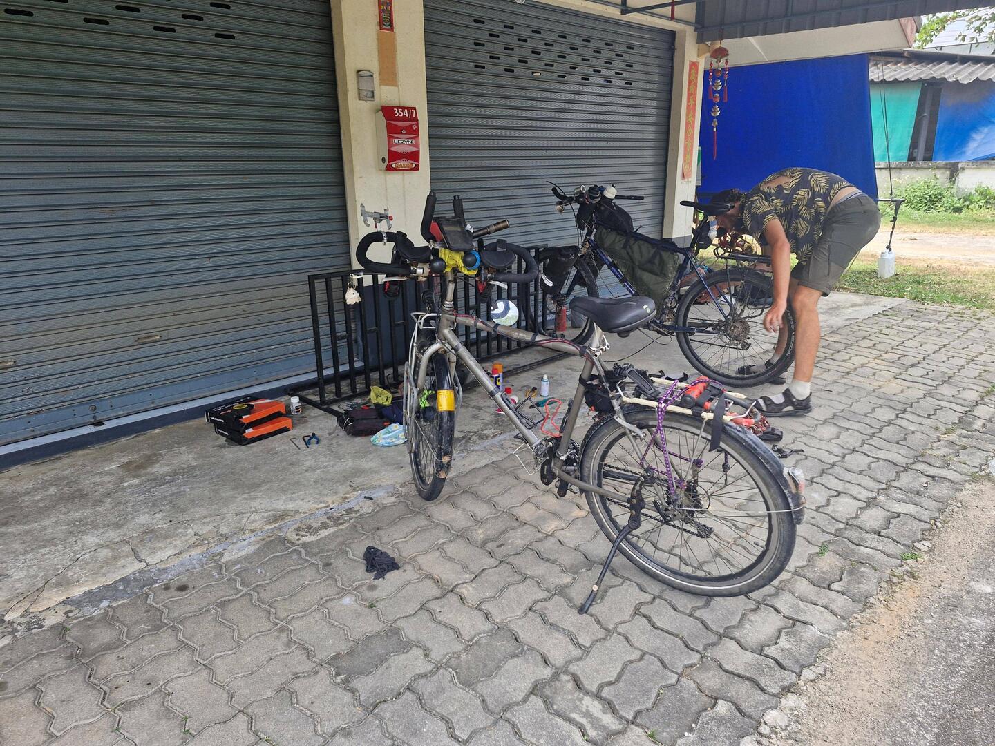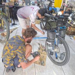 Il assemble son vélo très rapidement.