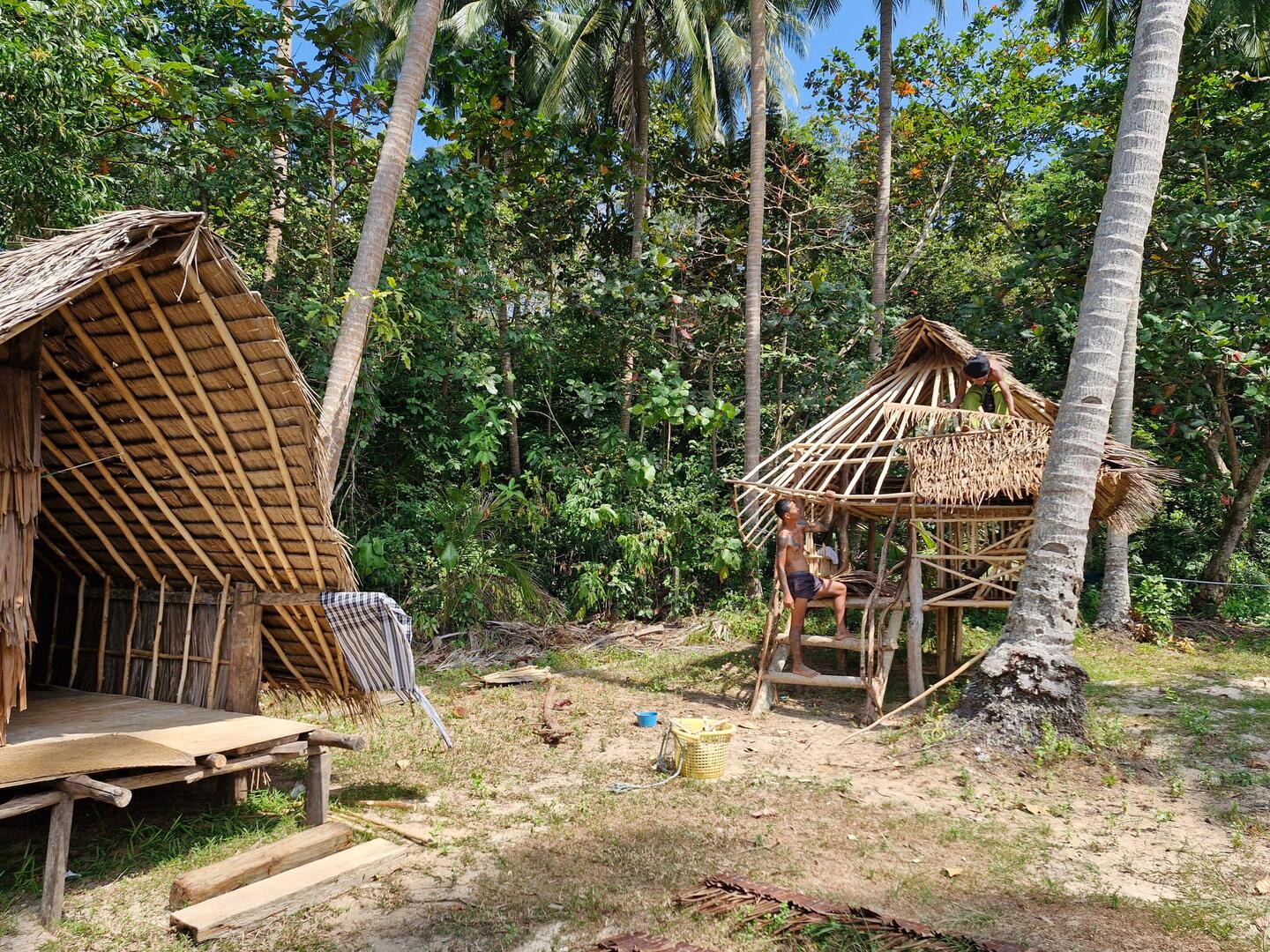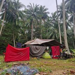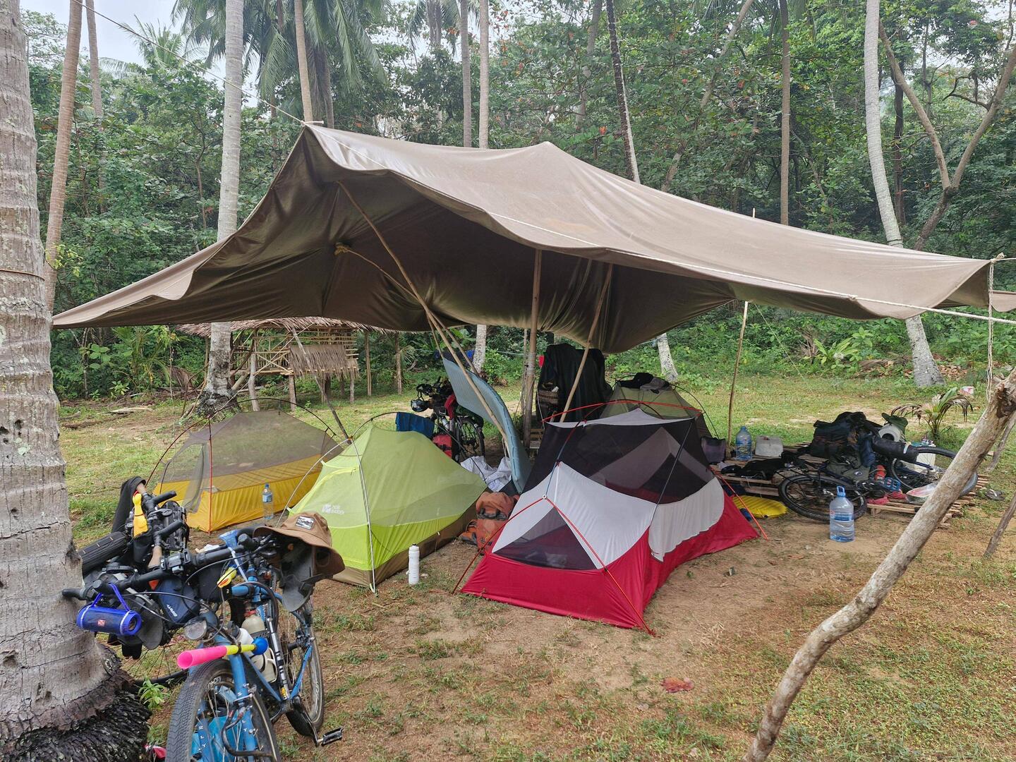 J'installe ma tente ⛺ surélevé sur une petite cabane avec plancher en bambou.