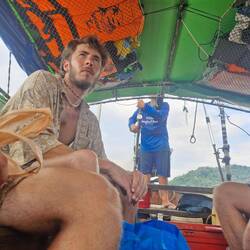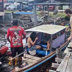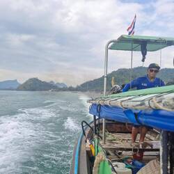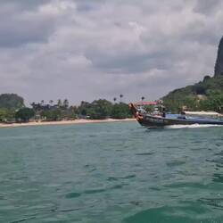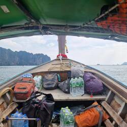 Taxi bateau pour rejoindre Ao Nang beach où nous avions laissé les vélos en dépôt pendant une semaine dans un hostel.