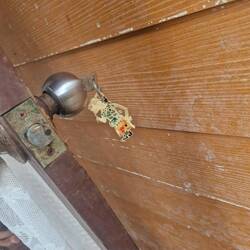 J'ouvre la porte puis la pouce doucement avec une bouteille d'eau.