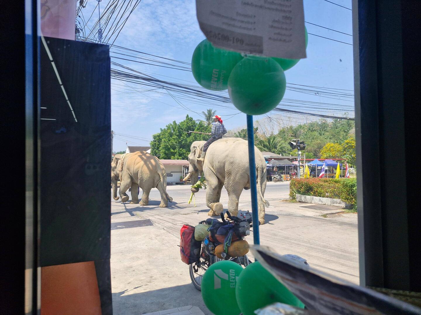 Passage d'un éléphant juste devant le 7 eleven.