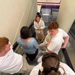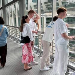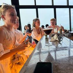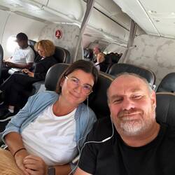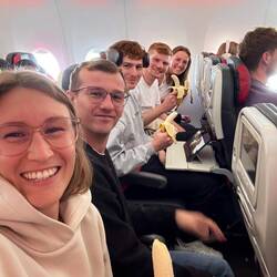 Lucas, Paula und Elias hatten eine etwas andere Route gewählt – mit dem Auto nach München, dann mit der S-Bahn zum Flughafen. Jenny und Jeremias waren ohnehin schon in München und trafen dort die anderen. Ihr Flug verlief allerdings weniger ereignislos: Der Sitznachbar von Paula wurde plötzlich ohnmächtig. Zum Glück ging alles gut aus, aber ein kleiner Schreckmoment war es trotzdem.