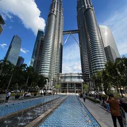 Nach einer kleinen Mittagspause sind wir zu den berühmten Petronas Twin Towers gelaufen – den wohl bekanntesten Wahrzeichen von Kuala Lumpur. Auch wenn ich hier von 2000 bis 2004 mein Büro hatte und die Türme fast täglich gesehen habe, sind sie immer wieder beeindruckend. Diese Eleganz aus Stahl und Glas, die Symmetrie und die Höhe – jedes Mal aufs Neue faszinierend.
