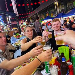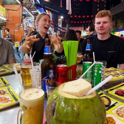Wir haben geschlemmt, gelacht und angestoßen – cheers with Tiger Beer! – während die Nacht um uns herum pulsierte. Es war laut, chaotisch und einfach wunderbar. Jetzt schon eines der Highlights unserer Reise – ein Abend, der den Geschmack Malaysias perfekt eingefangen hat.