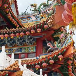 Der Thean Hou Tempel in Kuala Lumpur zählt zu den prächtigsten und bekanntesten chinesischen Tempeln Malaysias. Er wurde 1987 erbaut und 1989 eröffnet – finanziert und betrieben von der Hainanese-Community, einer der vielen chinesischen Gruppen des Landes. Der Tempel ist der Meeresgöttin Mazu (Thean Hou) gewidmet, die als Beschützerin der Fischer und Seefahrer gilt.