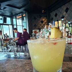 Zum Sonnenuntergang um halb sieben ging es los. Der Himmel färbte sich über der Bucht in warmen Orangetönen, und die Lichterketten gaben dem Abend eine festliche Stimmung. Das Buffet war überwältigend: frisch gegrilltes Gemüse, Sushi, zartes Hähnchen, Rindfleisch, Lobster, Mahi-Mahi und Tintenfisch – alles wunderbar angerichtet und köstlich zubereitet.