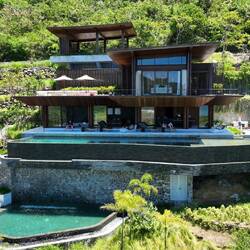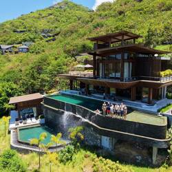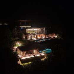 Das Areal umfasst über 150 Hektar hügeliges Gelände mit spektakulärem Blick auf das Meer und wurde von Beginn an mit Fokus auf Nachhaltigkeit, lokale Integration und Umweltbewusstsein geplant. Die Architektur folgt der natürlichen Topographie, Regenwasser wird gesammelt, Energie zunehmend über Solar gewonnen, und viele Materialien stammen direkt von der Insel.