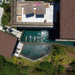 Zum Konzept gehören private Villen (wie unsere „Tibu“), eine Beach Bar, Restaurant, Surfcenter, Fitness- und Yoga-Angebote, sowie gemeinschaftliche Einrichtungen für Bewohner und Gäste. Das Team rund um Tampah Hills legt großen Wert darauf, eine lebendige Community aufzubauen – mit Sport, Kultur, Natur und lokalem Austausch als Herzstück.