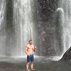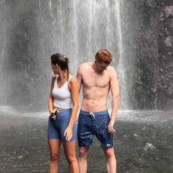 Am nächsten Morgen gab’s Frühstück wieder direkt an der Strandbar, diesmal sind wir sogar zu Fuß hinuntergelaufen. Dann durften die Jungs springen – vom Dach, in die Wellen, ins neue Abenteuer. Dann auch mit richtigem Wasserfall.