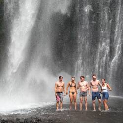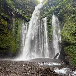 Der Sendang Gile Fall stürzt rund 30 Meter in die Tiefe und ist der einfachere und schnellere Zugangspunkt. Das Wasser kommt direkt aus den Quellen des Mount Rinjani, Lomboks aktivem Vulkan, und gilt als außergewöhnlich rein. Das kühle Nass wird von den Einheimischen sogar als heilig angesehen – man sagt, wer darin badet, könne sich um zehn Jahre jünger fühlen.