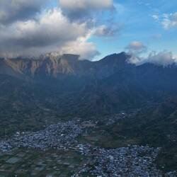 Sembalun liegt am Fuße des Rinjani, Lomboks höchstem Vulkan, und ist eines dieser Dörfer, die man sofort ins Herz schließt. Auf rund 1.100 Meter Höhe gelegen, ist es angenehm kühl, und die Luft riecht nach Erde und frischem Gemüse. Die weiten Felder rund um das Dorf sind in kleine, rechteckige Parzellen unterteilt – ein riesiges buntes Mosaik aus Reispflanzen, Zwiebeln, Karotten und Erdbeeren. Aus der Vogelperspektive sieht es fast wie ein lebendiges Schachbrett aus.