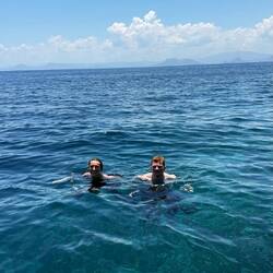 Unser erster Stopp lag in einem geschützten Gebiet, wo das Wasser glasklar war und schon beim Hineinspringen eine bunte Unterwasserwelt sichtbar wurde 🐡🐠.