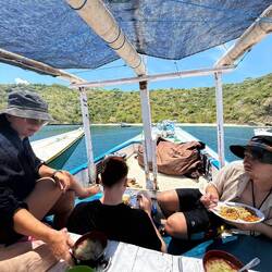 Zum Abschluss wartete an Bord ein leckeres Mittagessen, bevor wir wieder Kurs auf die Küste nahmen. Müde, salzig und rundum glücklich fuhren wir zurück in die Tibu – mit dem Gefühl, einen dieser perfekten Urlaubstage erlebt zu haben, die man so schnell nicht vergisst.