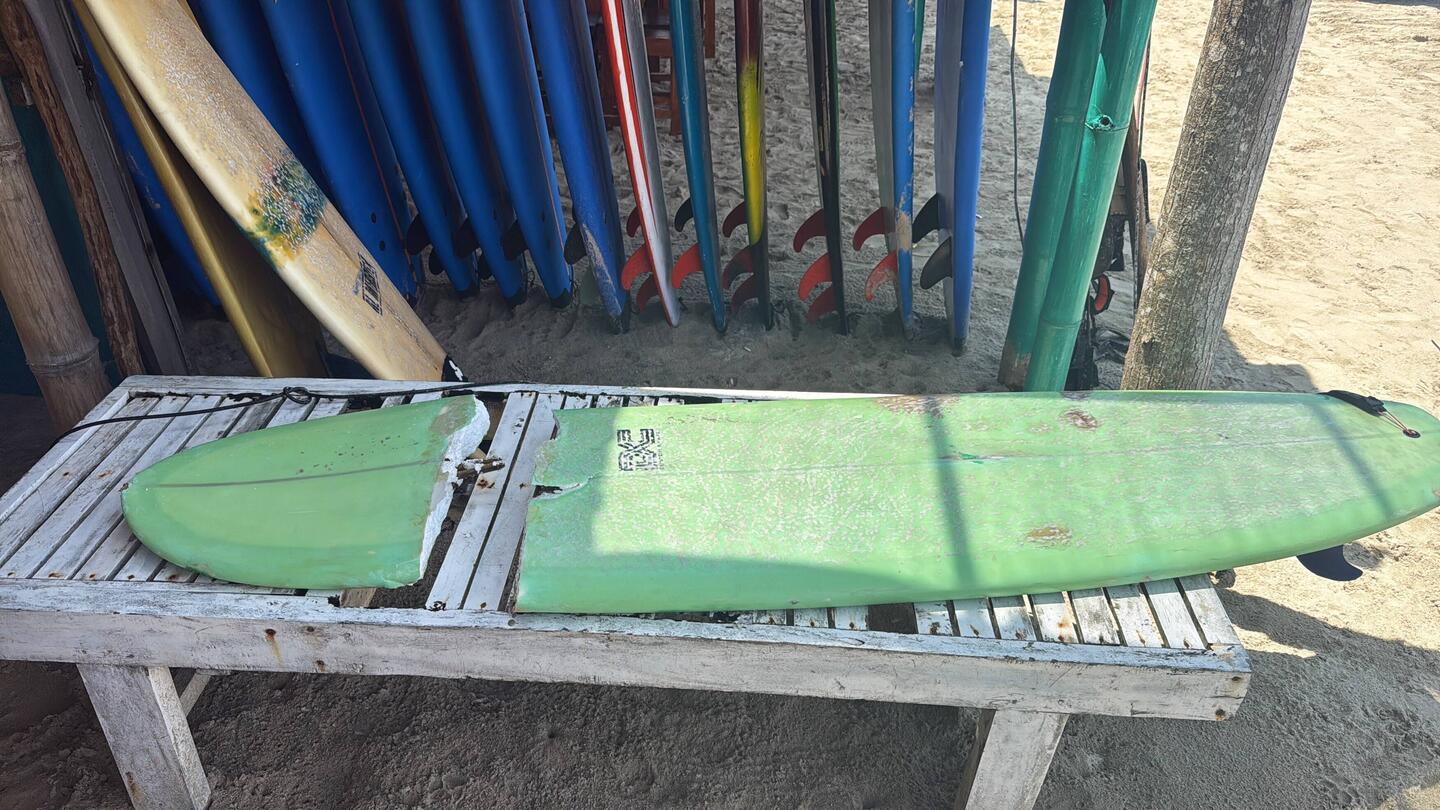 Kaum angekommen, konnte ich nicht widerstehen. Die erste Welle kam – kraftvoll, groß, fast majestätisch. Ich paddelte, spürte den Zug des Wassers, den Moment, in dem alles still wird, bevor die Natur ihre ganze Wucht entfesselt. Doch die Welle war zu schnell, zu stark, und ich – nicht ganz am richtigen Ort. Ein Krachen, ein kurzer Moment des Unglaubens – das Board zerbrach in zwei.