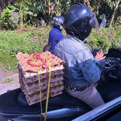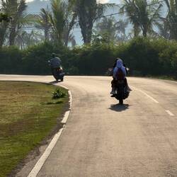 Die meisten Roller auf Lombok sind kleine 110–125ccm-Modelle, sparsam im Verbrauch und ideal für die schmalen und steilen Straßen. Die Einheimischen nutzen ihre Roller aber nicht nur zum Fahren: Manche verwandeln sie in mobile Verkaufsstände für Essen, andere transportieren damit die Ernte von den Feldern.