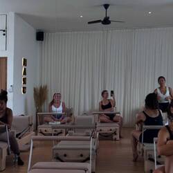 Im Urlaub haben Paula und Jenny ein paar Mal Reformer Pilates im Maru in Kuta gemacht – ein richtig schöner Ausgleich zu Sonne und Meer. Reformer Pilates ist ein Training auf speziellen Geräten, den sogenannten Reformern, bei dem man gezielt Kraft, Flexibilität und Balance stärkt – gleichzeitig ist es sanft für Gelenke und sehr effektiv. Das Studio hatte eine sehr ruhige und entspannte Stimmung.