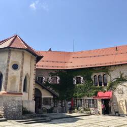 Ich sitze auf der Kircheninsel im Bleder See UND es gibt keine Cremeschnitte! Weil zu wenig Leute kommen ......; die Nusspotize ist ja auch gut, aber .... es fehlt was!