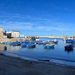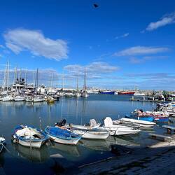Gelegen an einem natürlichen Hafenbecken zeigt sie sich mir unter blauem Himmel sehr idyllisch.