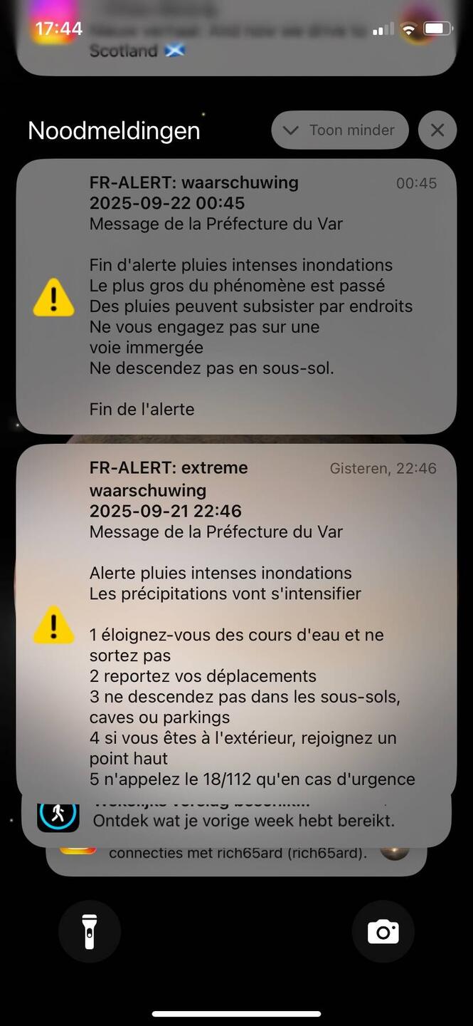 Wordt het toch nog even spannend als je een Alert FR krijgt met de waarschuwing op overstroming en heftig onweer. Voor de zekerheid maar even ons contact gebeld. We zagen ons al geëvacueerd worden.Читать далее