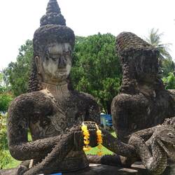 heut einige Sehenswürdigkeiten in Vientiane besichtigt: Pha That Luang, Wat Sisaket, Patou Xai, Buddha Park...