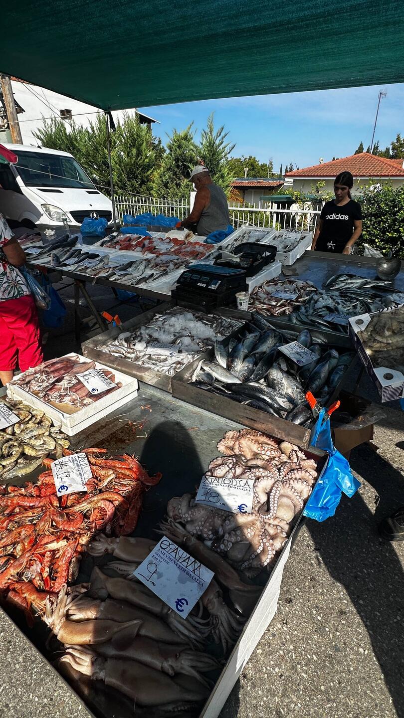 A visit to the weekly market in Kassandreia (held each Tuesday) was a lovely exposure to all things local - Ouzo, vino, pickled anchovies, dried sardines, lots of fresh seafood and vendors making aLeggi altro