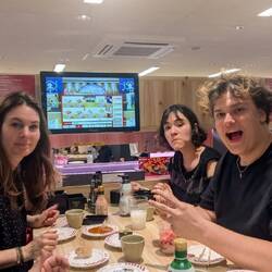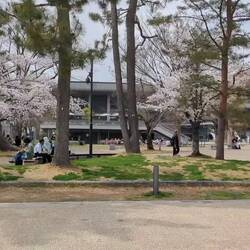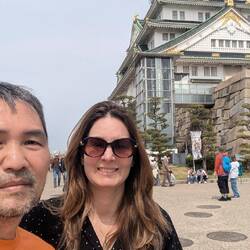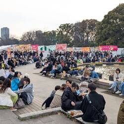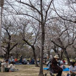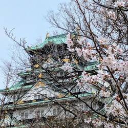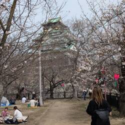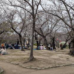Zudem ist es üblich, ein Picknick im Park unter Kirschblüten zu machen. Wir konnten das im Park bei Osaka Castle auch selbst machen. Neben uns eine fidele Gruppe an Pensionist:innen, die u.a. Gedichte rezitierten, sangen, und sich dazwischen laut zuprosteten.